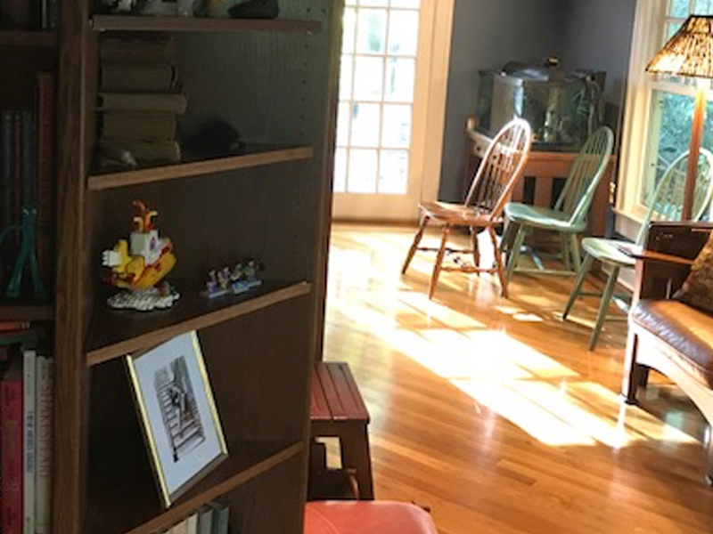 In the office, our goal was to create a space that was both functional and stylish. We started by removing clutter and unnecessary items from the room. This included extra chairs and a huge fish tank. We then added a desk with a comfortable chair and a game table with chess set and 2 beautiful chairs to create a functional, attractive workspace. We also arranged the built-in bookcases to show off the functionality and charm of this space.